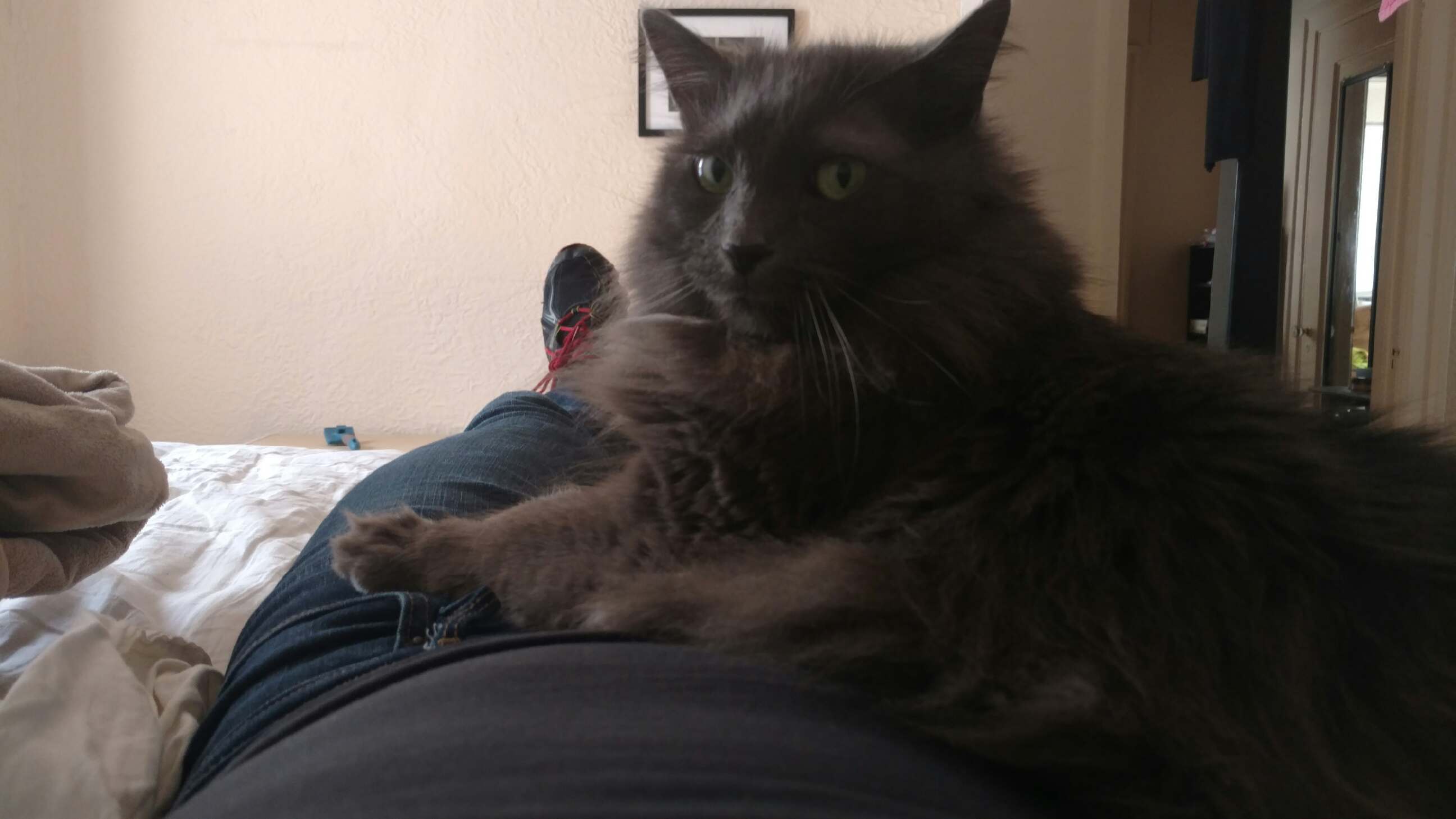She's just chilling on me right now.