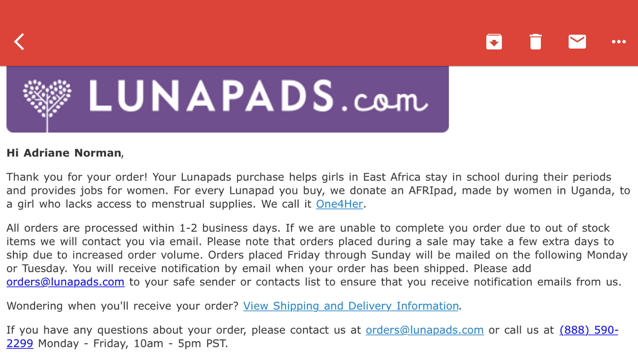 Adriane sent the following to me on Feb 9, 2017 06:42:17: